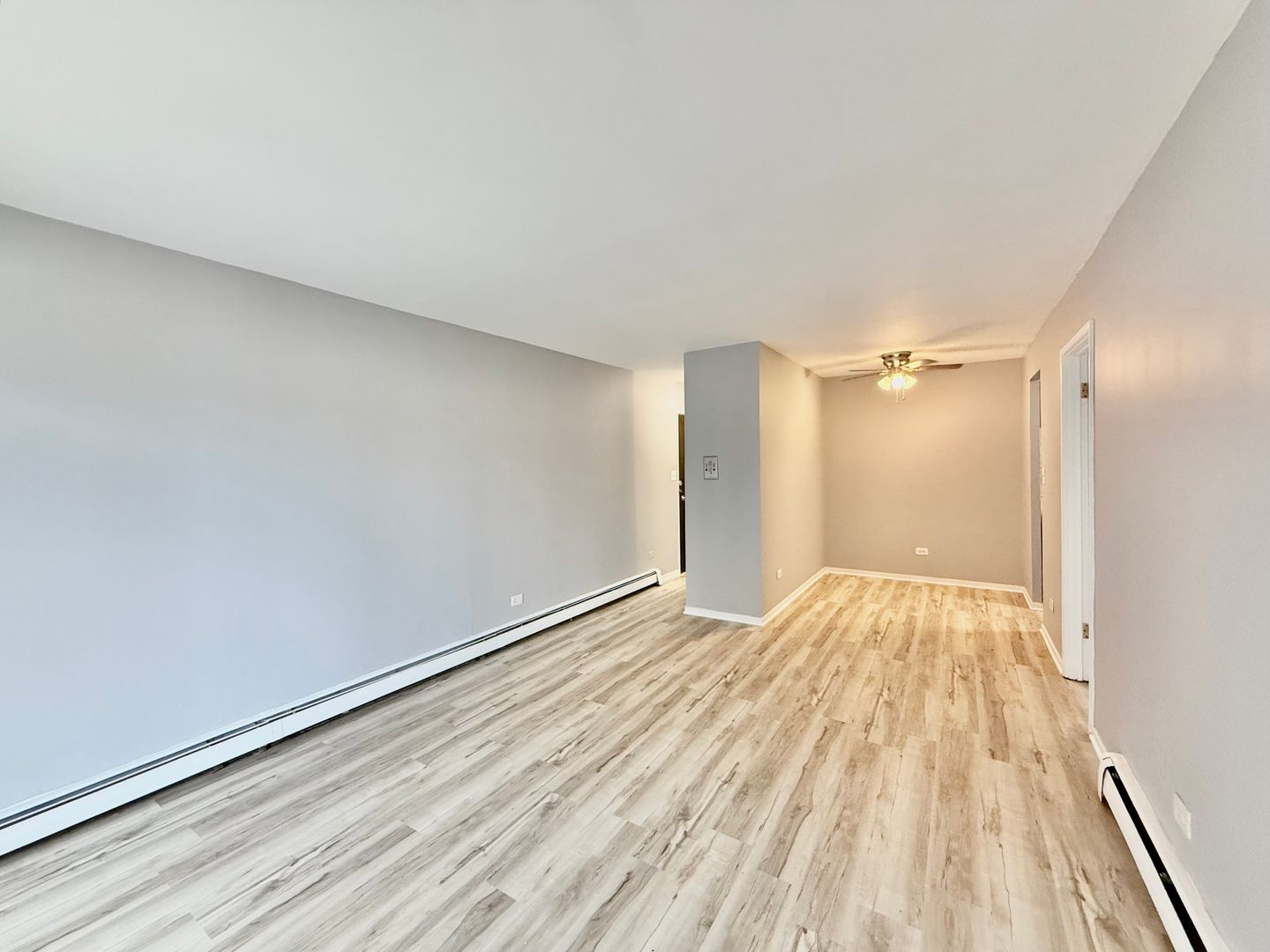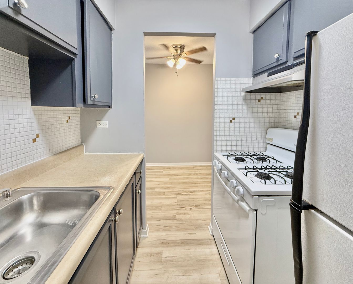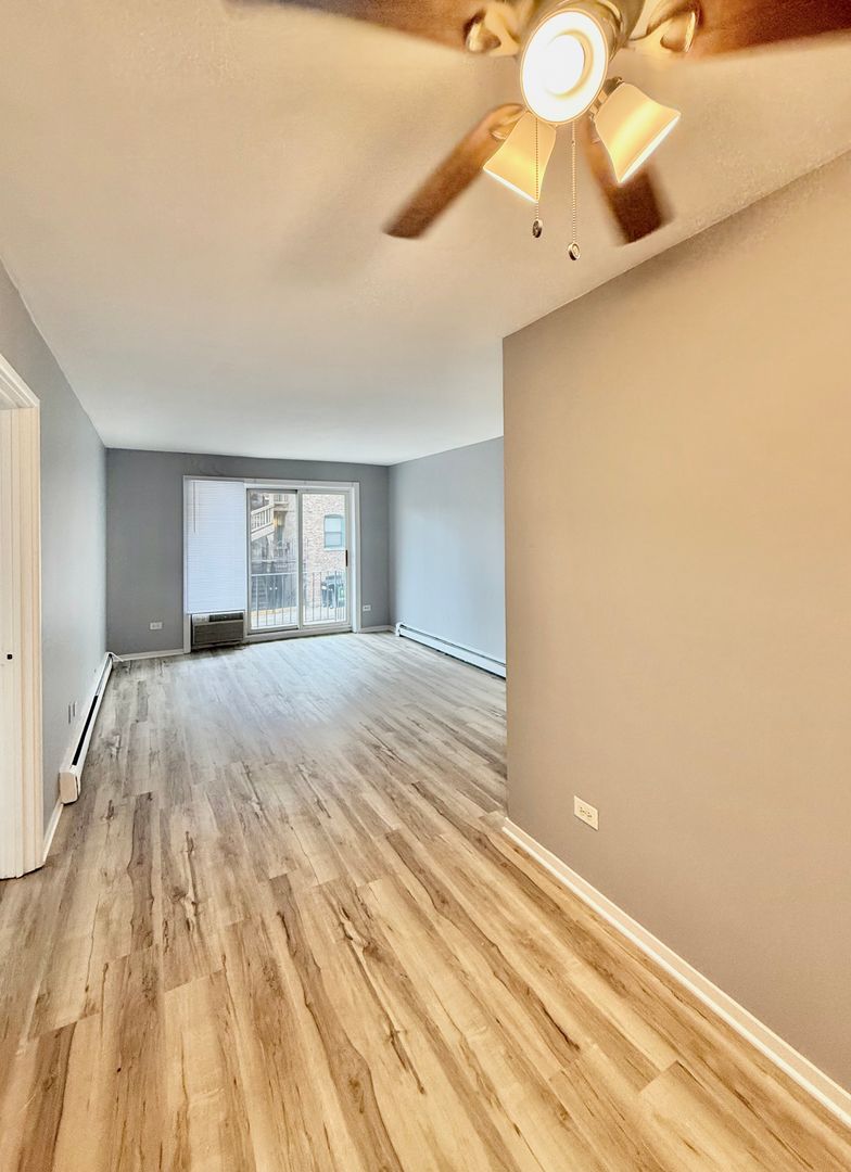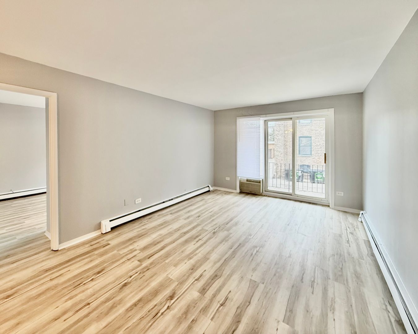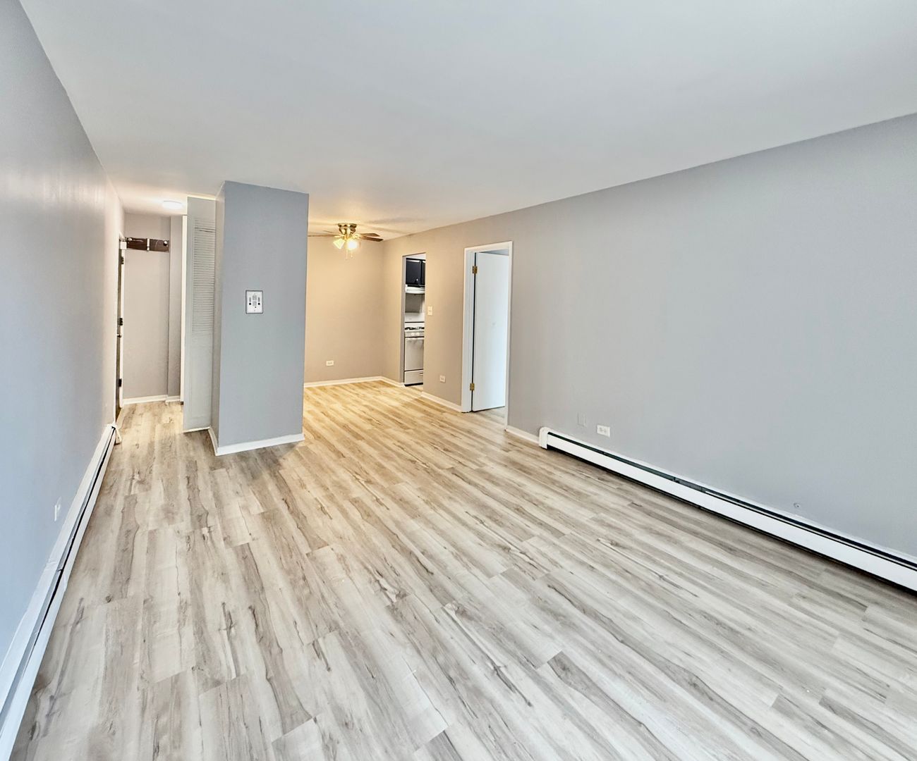 Freshly updated one-bedroom, one-bath apartment at 6815 N. Sheridan Rd, Unit 209 in Rogers Park. This bright, spacious unit is just 2–3 blocks from Lake Michigan and under a 10-minute walk to Loyola University and the Loyola train station. Updated floors and fresh paint throughout complement a large living room with a separate dining area and a galley-style kitchen featuring a full-size refrigerator, gas range/oven, attractive cabinetry and ample countertop space. The oversized bedroom fits a king bed and offers a huge double closet; the bathroom has a full tub and shower, vanity, medicine cabinet and good lighting. Enjoy a balcony for outdoor space, in-unit breakers/closets with shelving, baseboard heat included in rent, and multiple wall A/C units provided. Garage parking available, please ask. Available now!